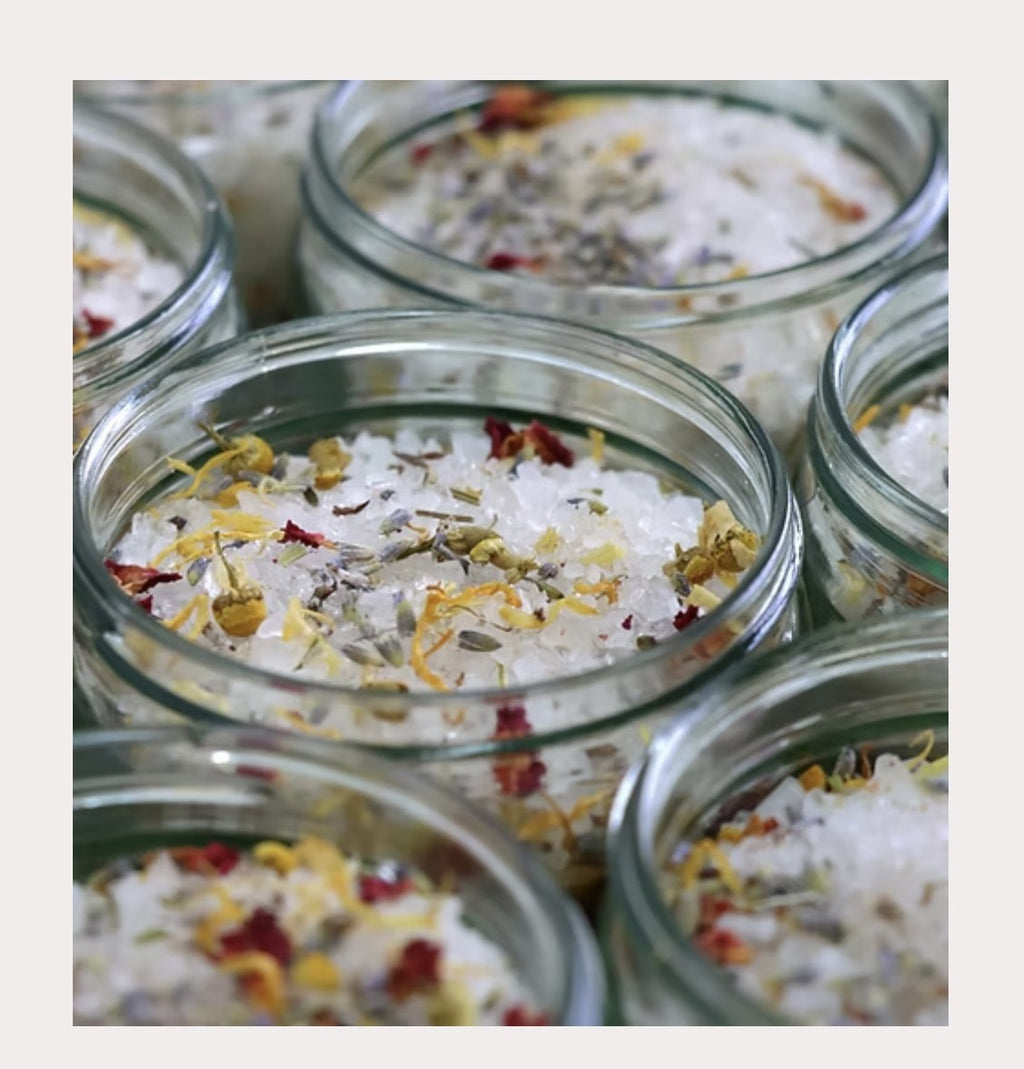 Ingredients: Sea Salt, Himalayan Salt, Epsom Salt, Dried Herbs and Petals, Lavender Essentail Oils, Sweet Orange Essential Oils.